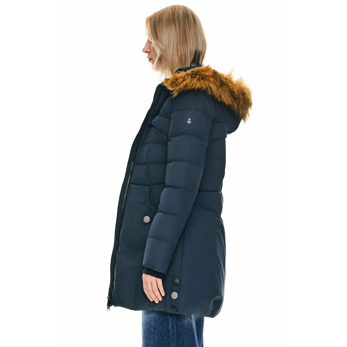 Orolay Faux Fur Qulited Puffer Down Jacket - Navy