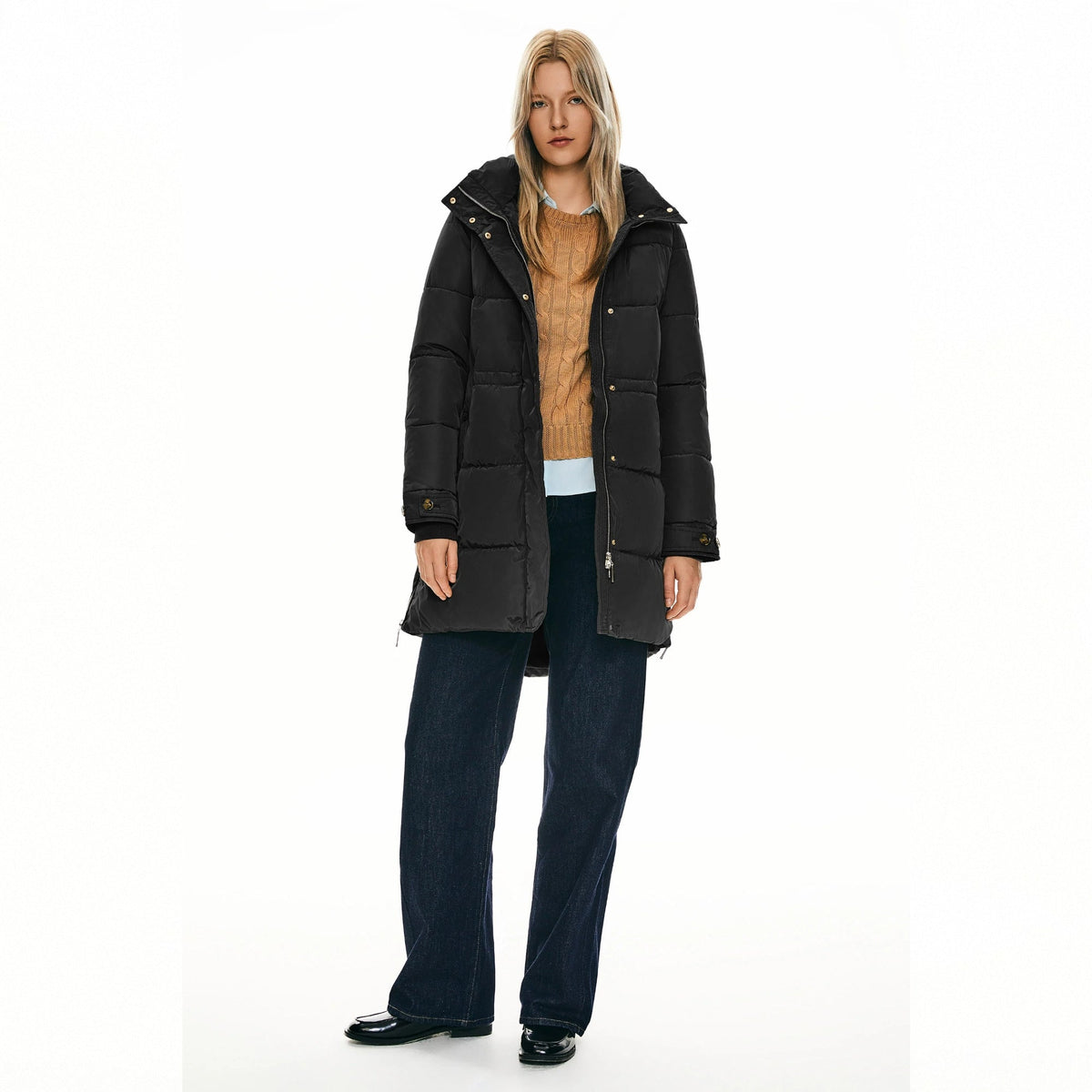 Orolay Zipper Winter Thickened Puffer Coat - Black